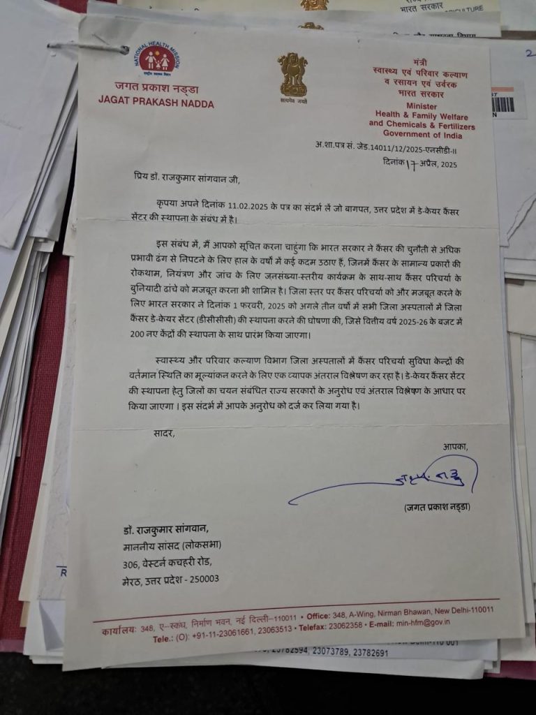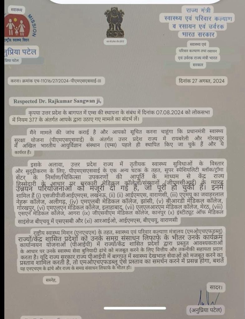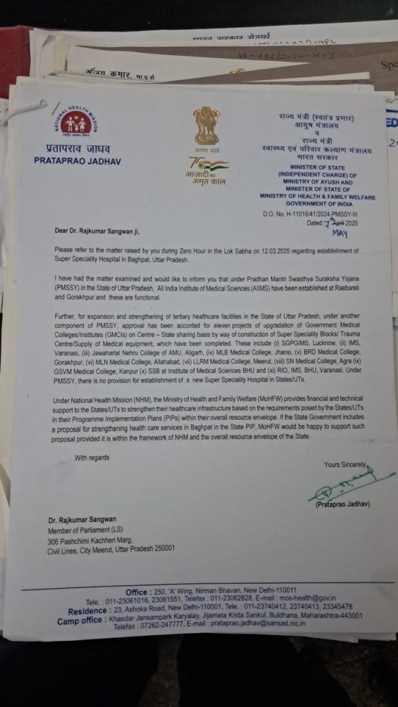 - एम्स बागपत की मांग को लेकर उन्होंने स्वास्थ्य मंत्रालय को प्रस्ताव भेजा।